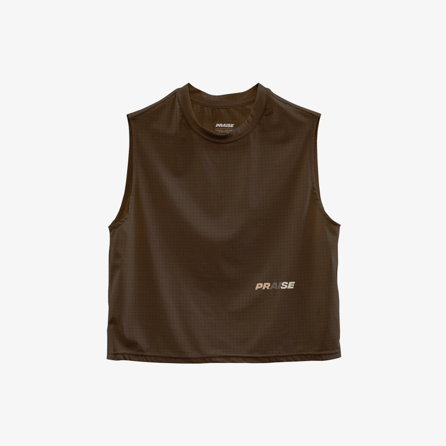 Débardeur en mesh performance léger avec perforations au laser. Imprimés réfléchissants au devant et au dos.